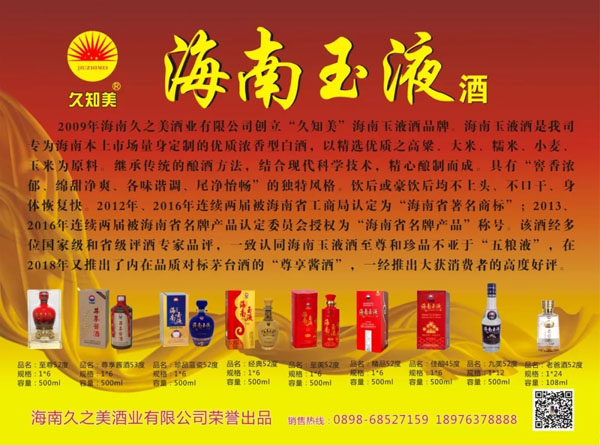 海南玉液酒,“只用品質(zhì)說話”---海南久之美酒業(yè)永恒的追求!