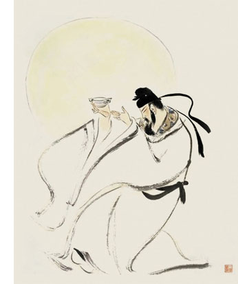 “李白一斗詩百篇,長安市上酒家眠,天子呼來不上船,自稱臣是酒中仙?!保ǘ鸥Α讹嬛邪讼筛琛罚白砝飶臑榭?,詩成覺有神?!保ǘ鸥Α丢?dú)酌成詩》)“俯仰各有態(tài),得酒詩自成。”(蘇軾《和陶淵明〈飲酒〉》)“一杯未盡詩已成,涌詩向天天亦驚?!保钊f里《重九后二月登萬花川谷月下傳觴》)。南宋政治詩人張元年說:“雨后飛花知底數(shù),醉來贏得自由身?!本谱矶蓚魇涝娮鳎@樣的例子在中國詩史中俯拾皆是。 不僅為詩如是,在繪畫和中國文化特有的藝術(shù)書法中,酒神的精靈更是活潑萬端。畫家中,鄭板橋的字畫不能輕易得到,于是求者拿狗肉與美酒款待,在鄭板橋的醉意中求字畫者即可如愿。鄭板橋也知道求畫者的把戲,但他耐不住美酒狗肉的誘惑,只好寫詩自嘲:“看月不妨人去盡,對月只恨酒來遲。笑他縑素求書輩,又要先生爛醉時?!薄皡菐М?dāng)風(fēng)”的畫圣吳道子,作畫前必酣飲大醉方可動筆,醉后為畫,揮毫立就。“元四家”中的黃公望也是“酒不醉,不能畫”?!皶ァ蓖豸酥頃r揮毫而作《蘭亭序》,“遒媚勁健,絕代所無”,而至酒醒時“更書數(shù)十本,終不能及之”。李白寫醉僧懷素:“吾師醉后依胡床,須臾掃盡數(shù)千張。飄飛驟雨驚颯颯,落花飛雪何茫茫?!睉阉鼐谱頋娔?,方留其神鬼皆驚的《自敘帖》。草圣張旭“每大醉,呼叫狂走,乃下筆”,于是有其“揮毫落紙如云煙”的《古詩四帖》。 |